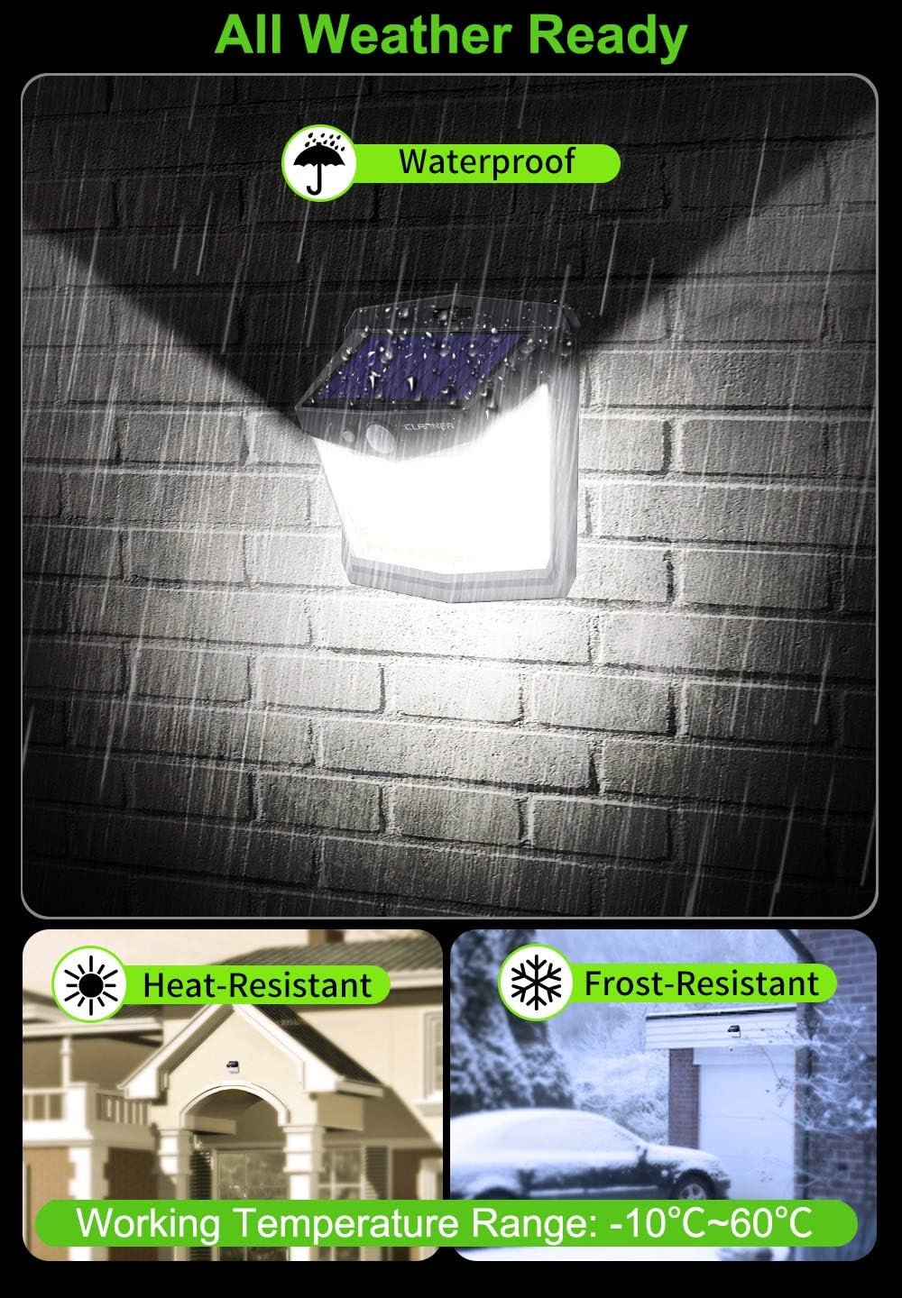 - 【Energy-saving & Durable】No electricity bill, claoner solar light can provide 6-8 hours of lighting time at night only need to charge 6-8 hours of sunshine. Made of high-impact ABS plastic, has unique IP65 waterproof and can withstand all kinds of terrible weather.