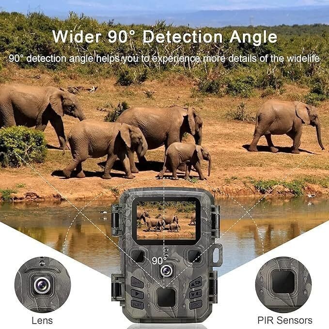 - IP65 waterproof and Mini design : ultra low energy consumptionoperating system (in standby mode, up to 6 months of long in-field life with 4 x AA batteries), easy to carry and hide(mini size 2.8*4.1*1.77inch), ideal hunting game camera for outdoor applications.